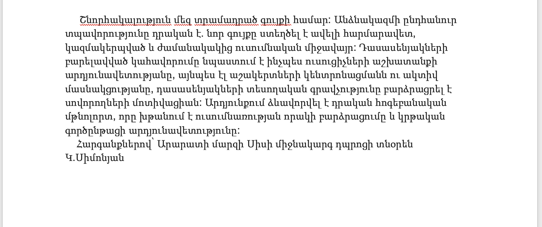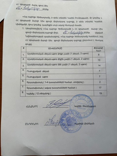 ASF provided furniture to the Secondary School of Sis Village in the Ararat Provence of Armenia. Thanks to the Tamberchi Fund’s generous donation, we were able to fulfill the request.